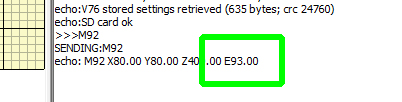 M92 is used to report or set the steps per mm for each axis. M92 by itself will report the current parameters. We want to make note of the number after E, in the example below, 93.00: