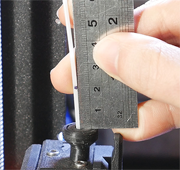 The filament will then slowly go through the extruder and hot end. Once the extrusion finishes, we measure the distance between the mark and the entry to the extruder.