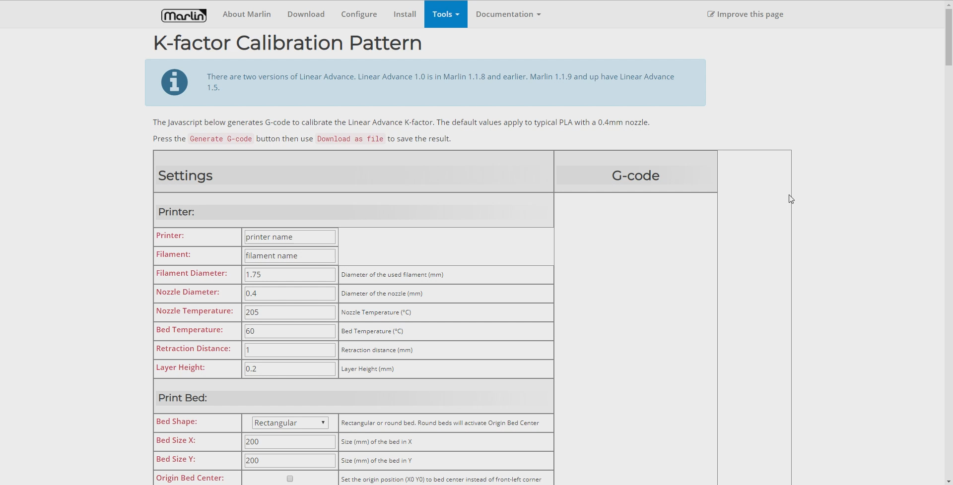 The above video takes you through how to use the pattern generator, which basically involves inputting printer and slicer parameters, before clicking to download the gcode file.