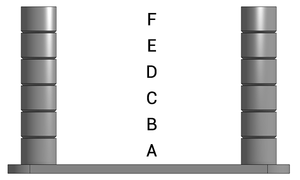 The following form will create a temperature tower to conveniently test back to back parameters in the same print. There are five segments to vary the temperature. Generally the lowest temperatures would be at the start of the print (segment A) and the increase up to the highest by the top of the print (segment E).