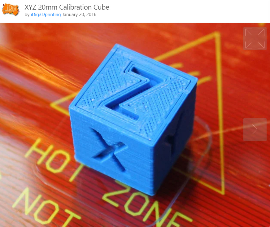 For example, the cube shown in the thumbnail of the XYZ 20mm calibration cube by iDig3Dprinting: